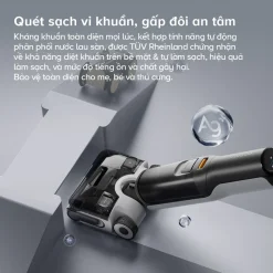 Bên cạnh đó, máy còn tích hợp hệ thống kháng khuẩn toàn diện với công nghệ ion bạc được áp dụng trong bình nước, bộ lọc và chổi lăn. Điều này giúp ngăn chặn sự phát triển của vi khuẩn và nấm mốc, đảm bảo sàn nhà luôn sạch khuẩn và an toàn cho sức khỏe gia đình. Khả năng kháng khuẩn hoạt động liên tục 24/7, mang đến không gian sống trong lành và vệ sinh tối ưu.