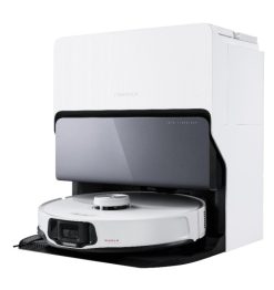 Dock sạc của Roborock S8 MaxV Ultra với thiết kế hiện đại, nhỏ gọn nhưng tích hợp đa công năng. Hầu hết mọi quy trình làm sạch trong dock đều được tự động hóa, phần đáy của đế giặt khăn lau cũng được làm sạch một cách tự động giúp kiệm rất nhiều thời gian và công sức so với việc vệ sinh dock sạc thủ công như trước đây.